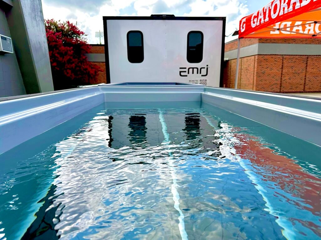The EMRJ Wellness and Recovery trailer transforms any location into a world-class Wellness and Recovery destination.  Designed for flexibility, speed, and impact, it delivers elite-level hydro-cryotherapy and heat therapy experiences at sporting events, corporate gatherings, weddings, concerts, festivals and private celebrations – without the need of a permanent structure.